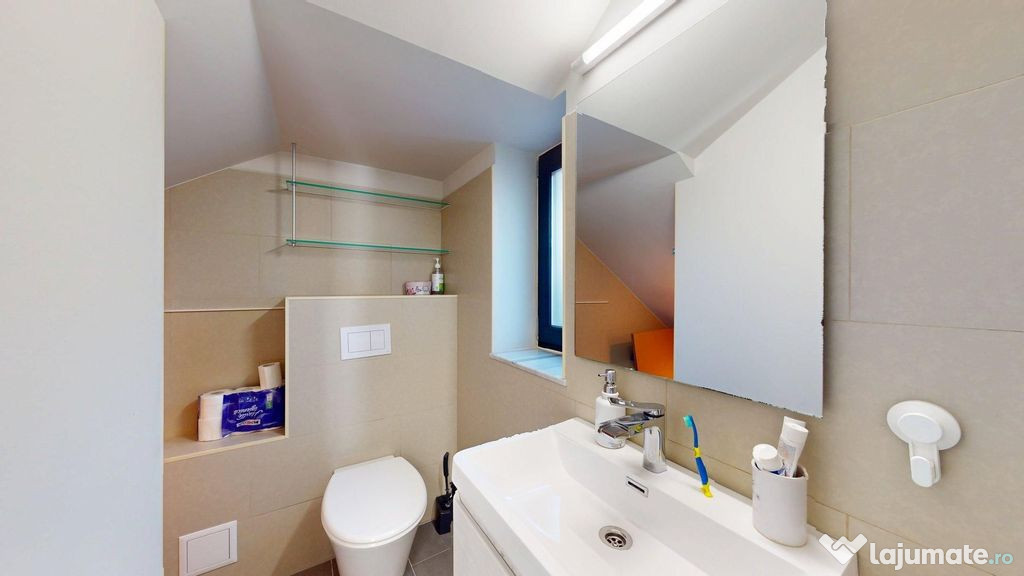 Tâmplăria exterioară este SALAMANDER, cu 7 camere și geam tripan, având un coeficient de transfer termic foarte performant.