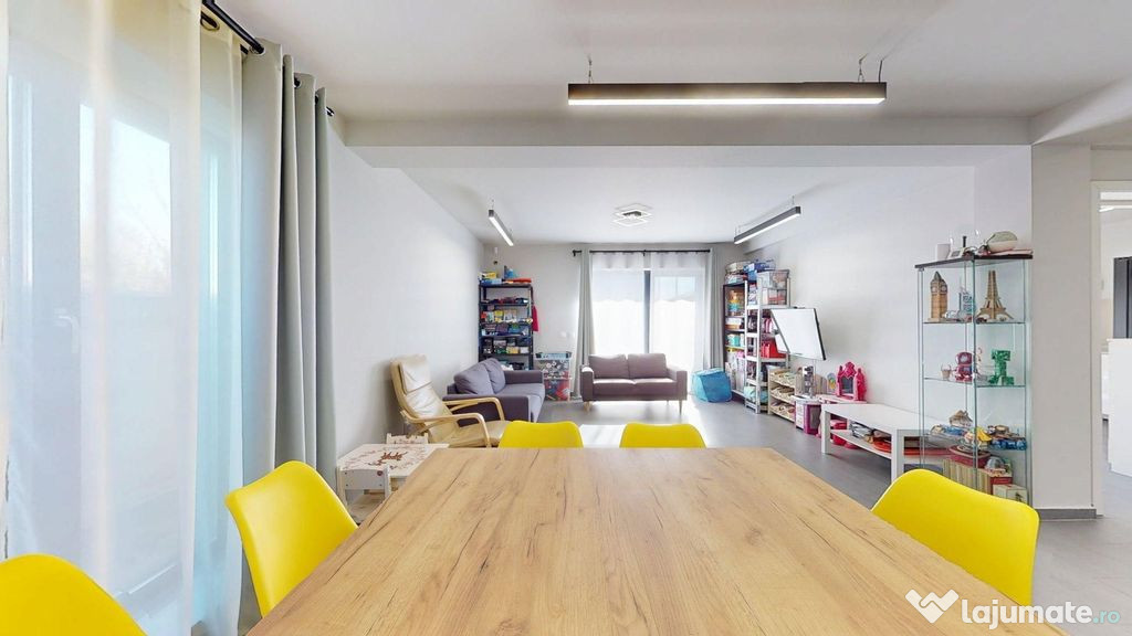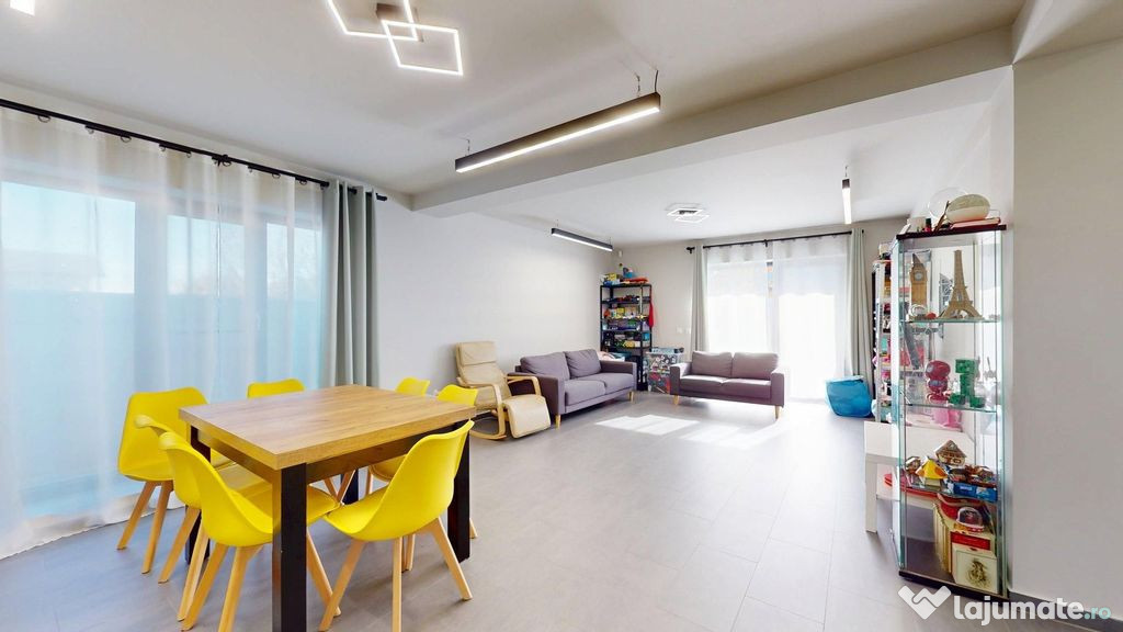 Proprietatea dispune de 3 dormitoare, 2 băi, living spațios, bucătărie închisă, două balcoane și o terasă generoasă, oferind confort și funcționalitate pentru o familie modernă.