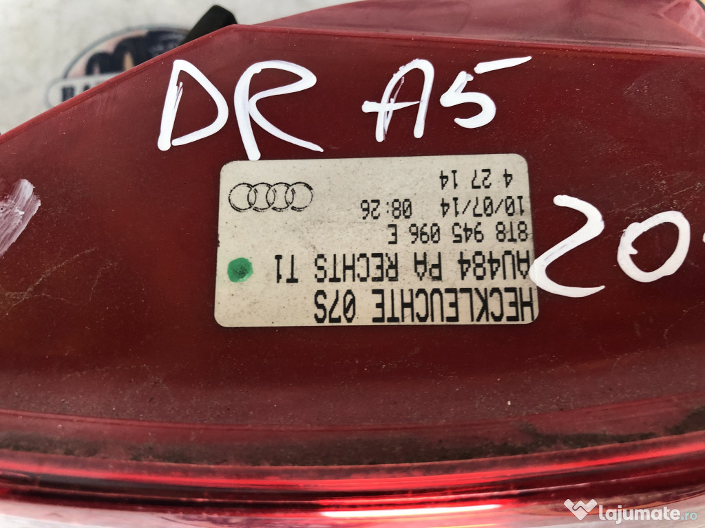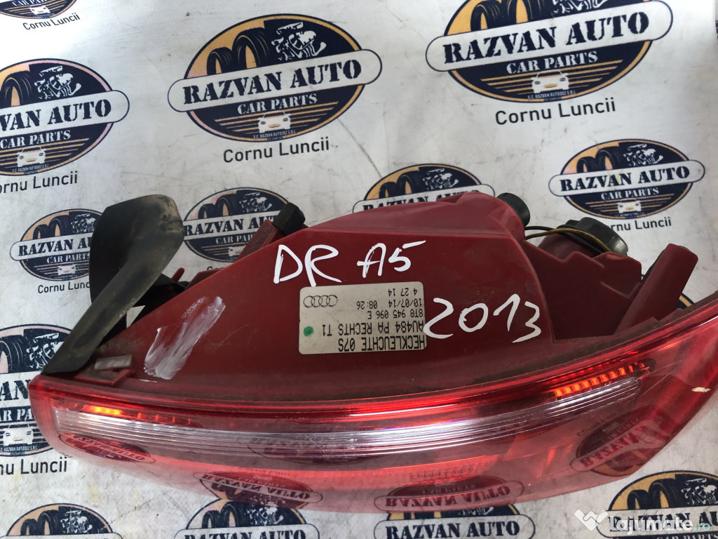 Stop dreapta aripa Audi A5 2013. Cod(uri): 8T8945096E. Piesele comercializate sunt originale, provenite din dezmembrari. Dispunem de o gama larga de piese multimarca. Piesele sunt verificate inainte de a fi puse spre vanzare. In caz de neconformitate piesa se poate returna. Va rugam sa verificati disponibilitatea pieselor telefonic. Trimitem in tara prin curier.Marcă: Audi
