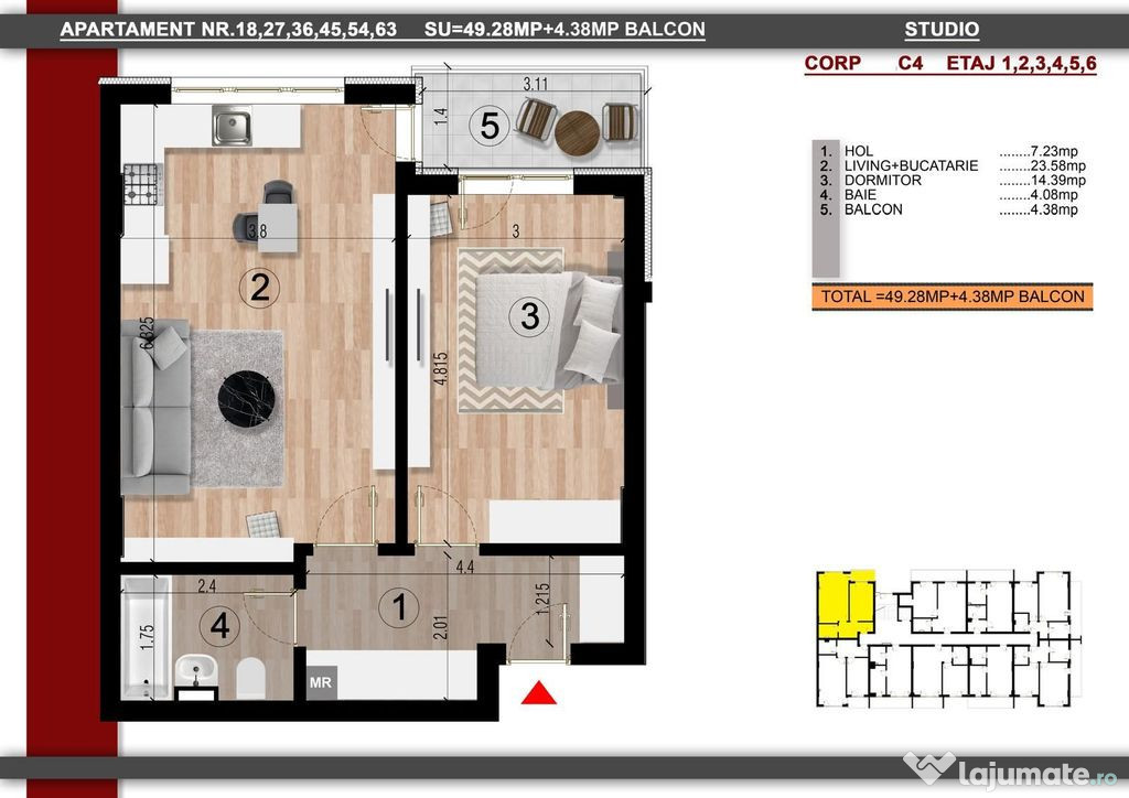 Foto si schita reala a apartamentului!