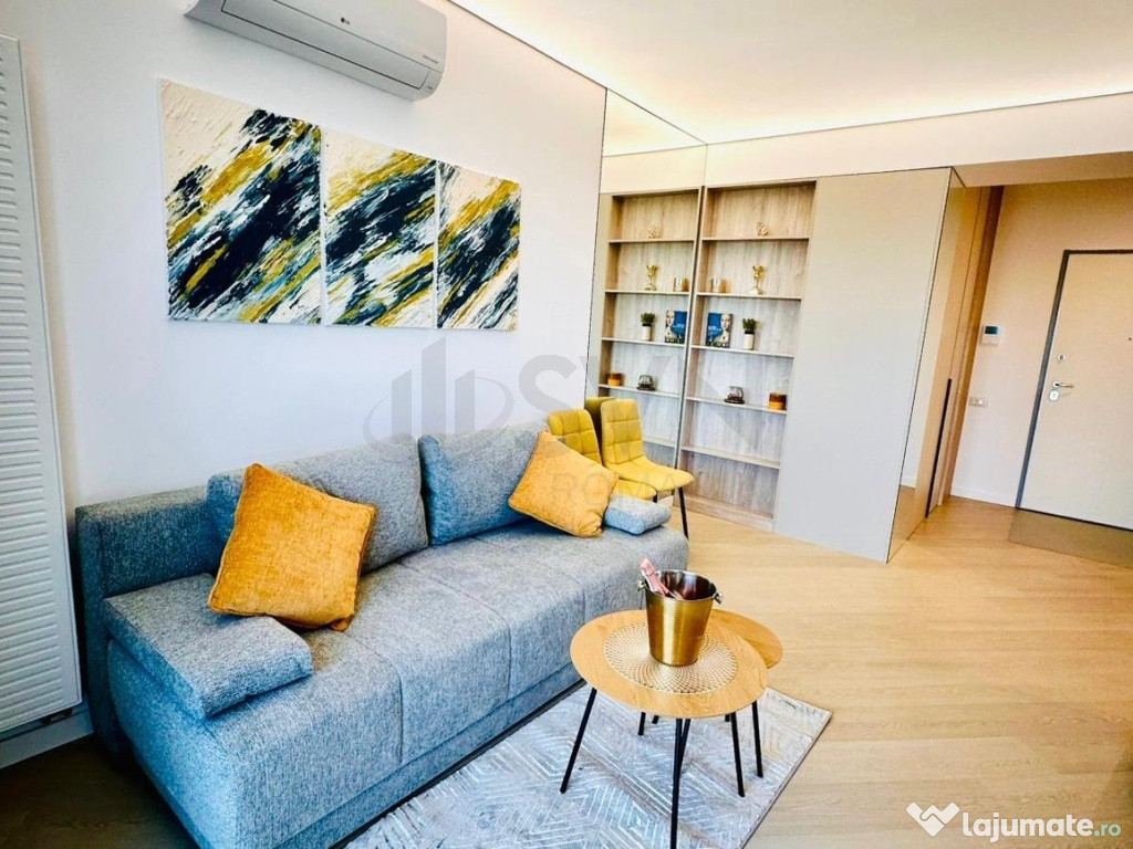 REA1026066 SVN Residentialist Pipera propune spre inchiriere un studio modern situat in prestigiosul complex rezidential Cortina North. Localizat intr-o zona linistita si bine conectata din nordul Capitalei, complexul ofera un stil de viata echilibrat intre confort, siguranta si accesibilitate.Cortina North beneficiaza de paza permanenta, acces securizat si sistem de monitorizare video, asigurand un mediu sigur pentru locatari. Spatiile verzi generoase, zonele de relaxare si aleile pietonale bine intretinute contribuie la un ambient placut si prietenos.