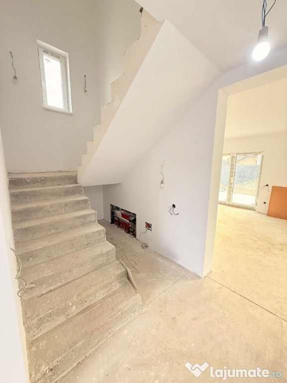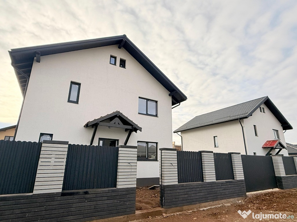 Vă propunem spre vânzare două case individuale P+E, situate într-o zonă liniștită din Izvor, cu acces rapid către Brașov. Fiecare locuință oferă 115 mp utili și un teren generos de 550 mp, completate de o terasă de 30 mp cu acces din living și 50 mp de pavaj incluși în preț.Compartimentarea este practică, cu living spațios, bucătărie separată și o baie la parter, iar la etaj se află trei dormitoare și o baie. Casele sunt tencuite interior și exterior, construite pe structură de cărămidă, cu izolație superioară, acoperiș din țiglă metalică, tâmplărie PVC cu geam tripan Salamander și încălzire în pardoseală. Podul este utilizabil ca spațiu de depozitare, oferind un plus de funcționalitate.