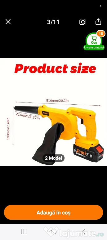 vând o suflanta de frunze cu acumulator de 4AMPERI, incarcator și celelalte din poze.Pret110ron ...