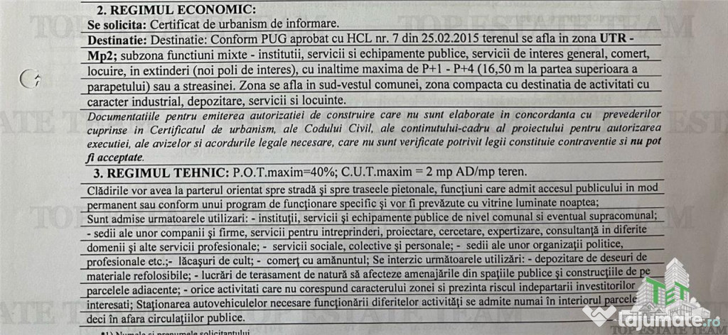 P.O.T maxim 40%, C.U.T maxim 2mp AD/mp teren