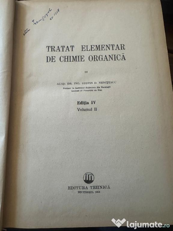Anuntul Tratat elementar de chimie organică vol.1 ș i vol. 2, C.D. NENIȚESCU este adaugat de pe LaJumate.ro.