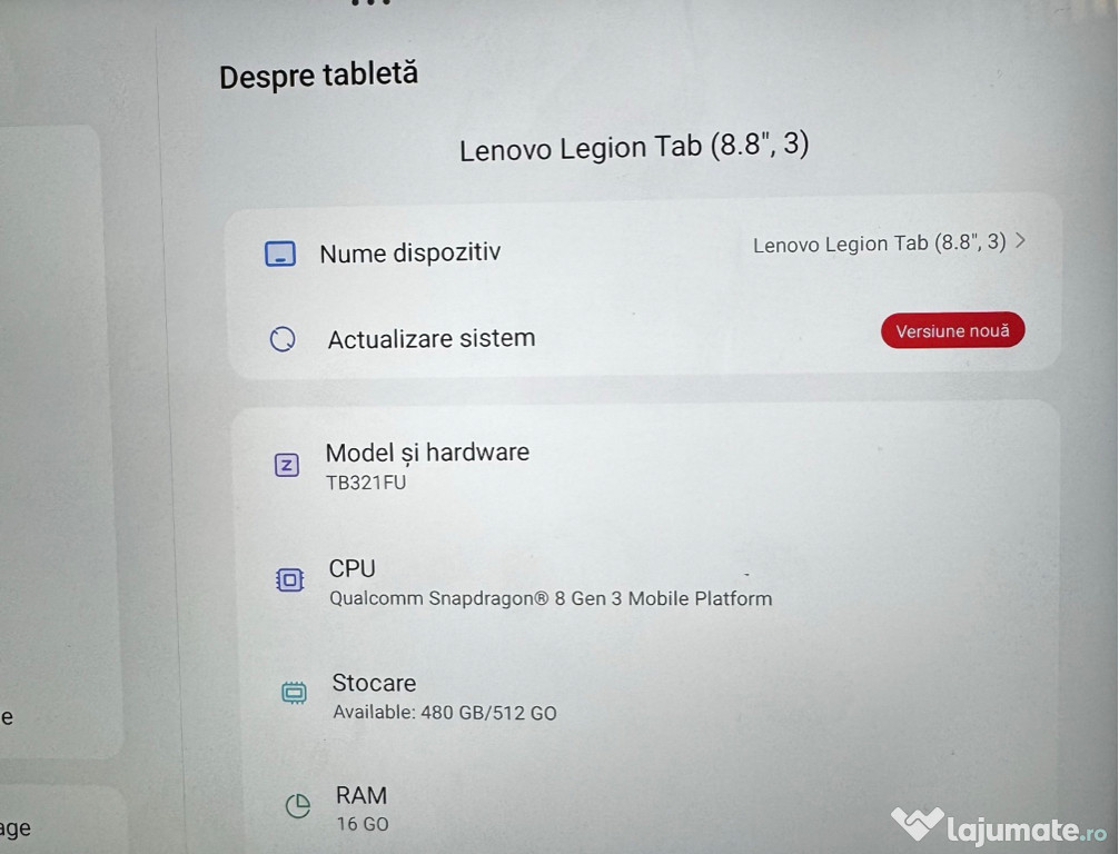 Anuntul Tabletă Lenovo Legion 8.8” este adaugat de pe LaJumate.ro.
