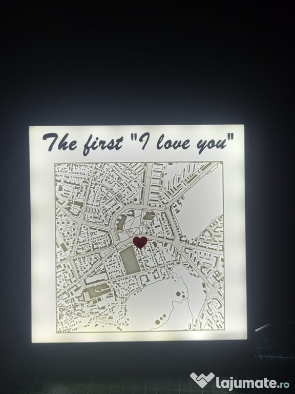 Tabloul este prevăzut cu iluminare LED integrată, care scoate în evidență harta și adaugă o notă caldă, romantică. Poate fi folosit ca decor de perete sau lampă ambientală — perfect pentru dormitor, living sau un cadou cu semnificație.
