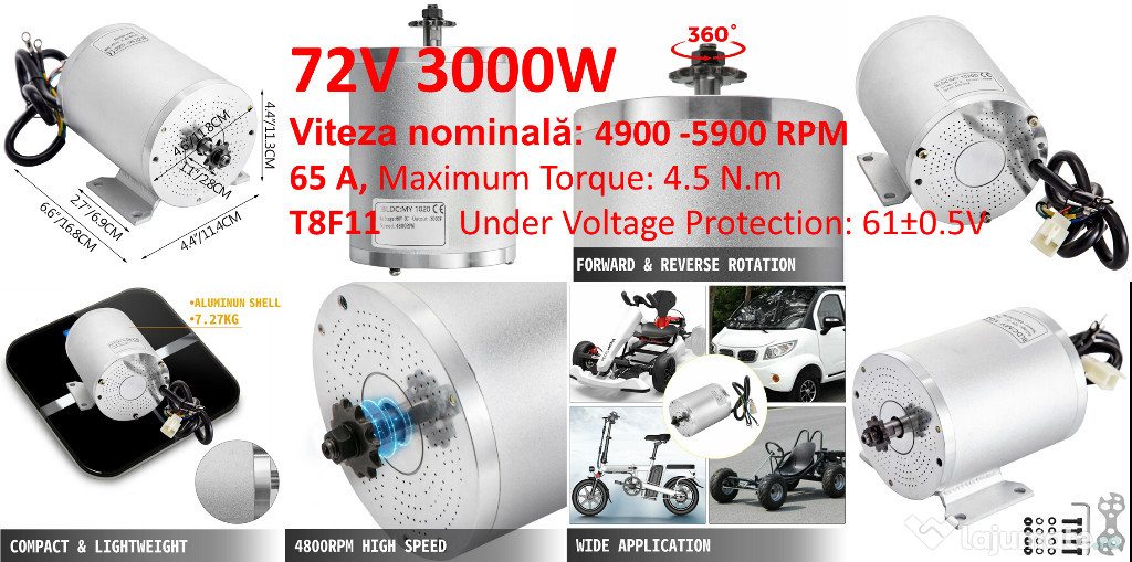 Anuntul Motor bicicleta electrica DC 48V 800W, 48V/60V 2000W. Nou este adaugat de pe LaJumate.ro.
