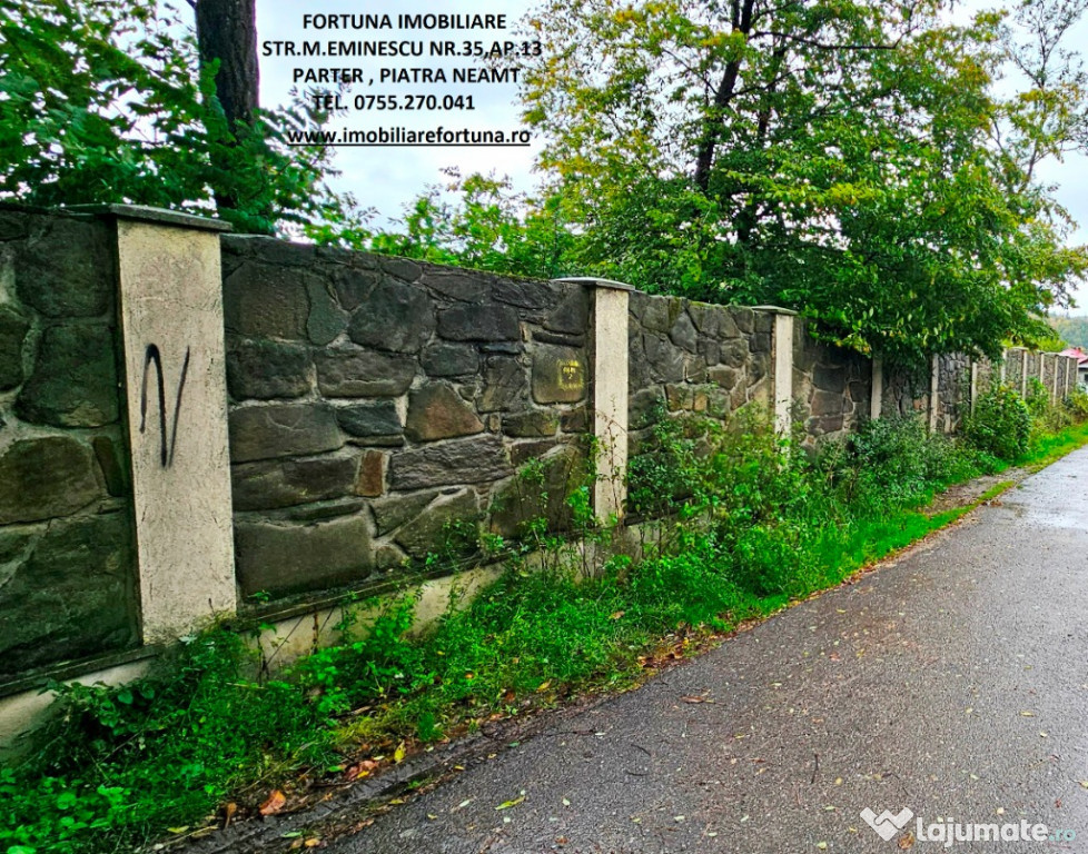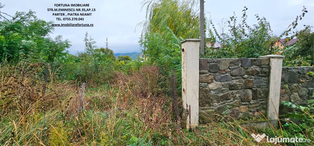 TEREN 1.250 MP, ZONA STADION, PRIVELIȘTE ȘI CADRU NATURAL SUPERB, 80 EURO/ MPCelor aflați în căutarea unui teren pentru construcție sau pentru investiție imobiliară, FORTUNA IMOBILIARE le oferă posibilitatea de a cunoaște beneficiile acestui teren situat în intravilanul municipiului Piatra Neamț, cu pădurea în spate, într-o zonă rezidențială în plin avânt imobiliar.