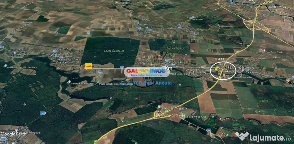 Teren 14000 mp la Dj Moara Vlasiei Gradistea latura Padure