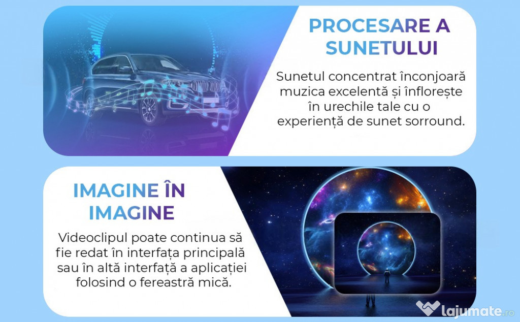 • Conectivitate Bluetooth pentru apeluri hands-free și redare audio de calitate superioară