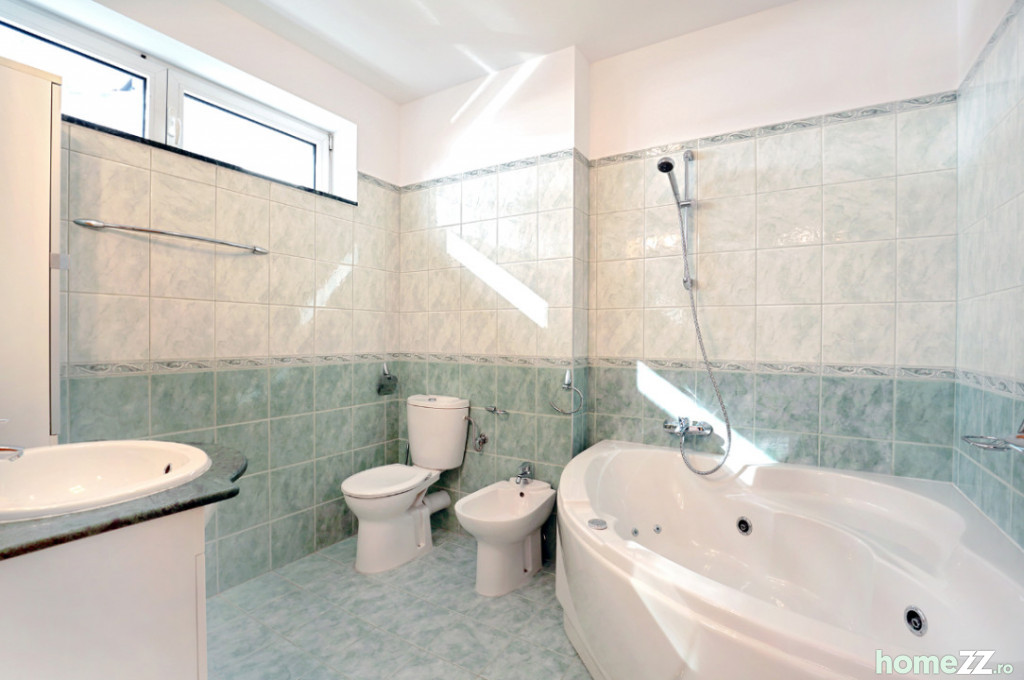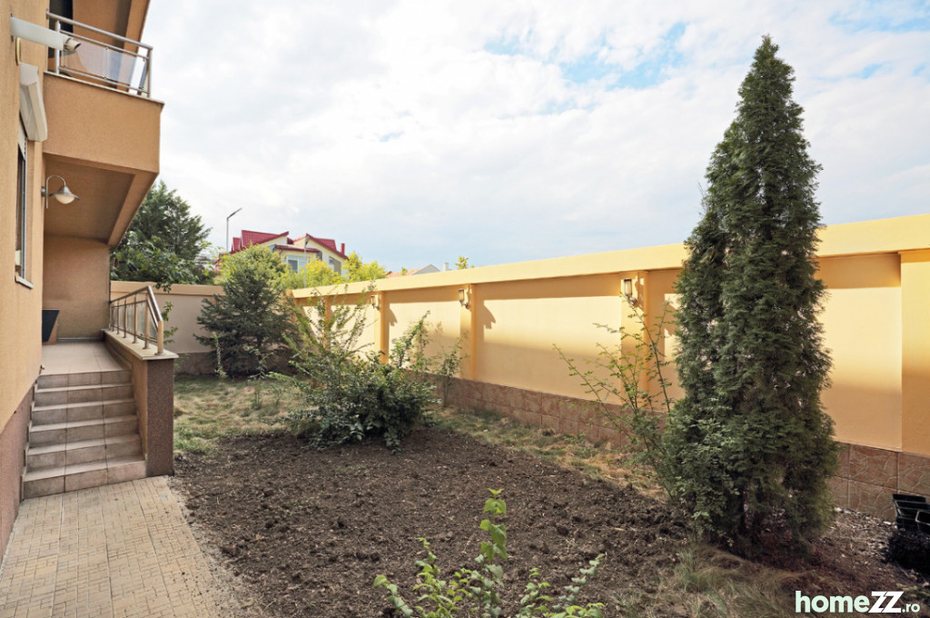 Configurație: 2 dormitoare, living, bucătărie, 3 băi, și curte.