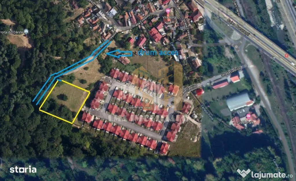 Zona este una cu un potential ridicat in plina dezvoltare imobiliara,la marginea terenului regasindu-se un ansamblu imobiliar de case(Green Valley).