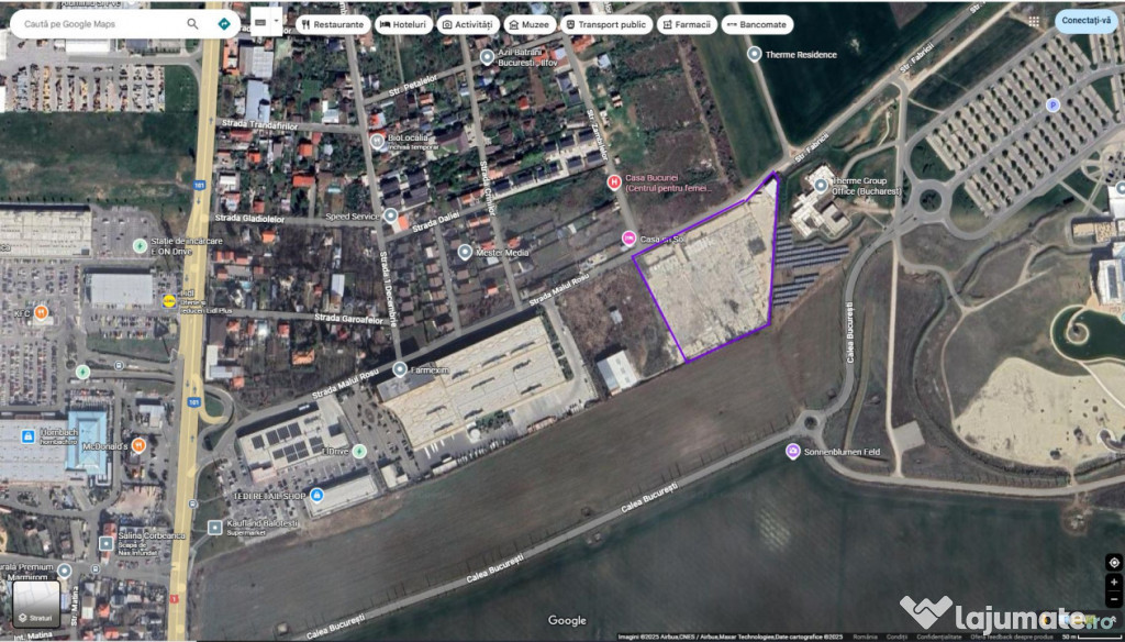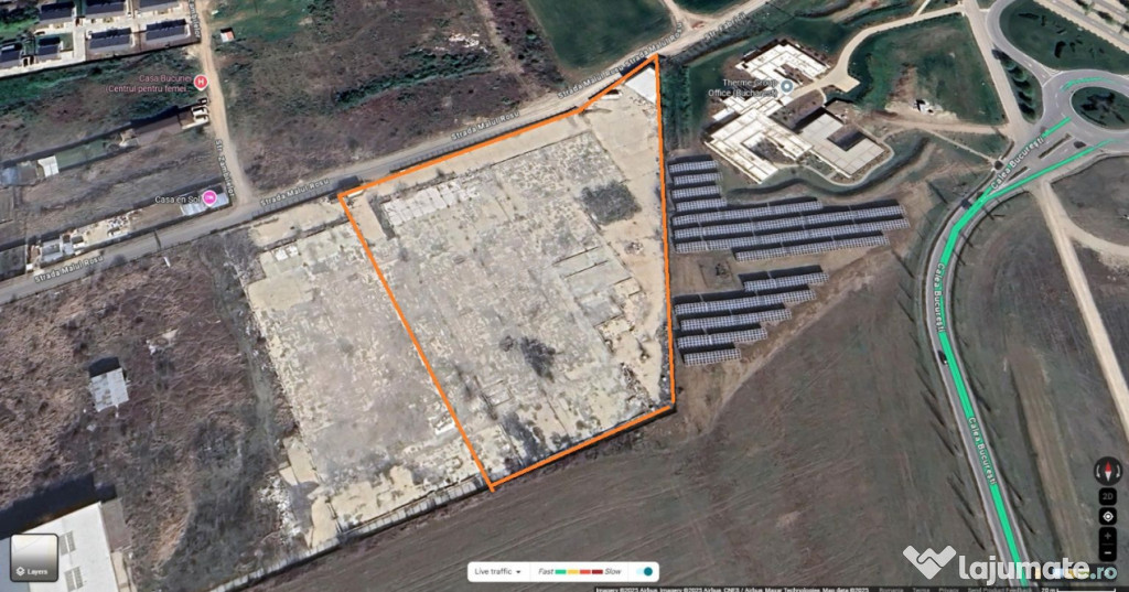Va aducem in atentie un teren de 12.853 mp situat in Balotesti lamnga Therme.terenul are platforma betonata si este pretabil industrial.