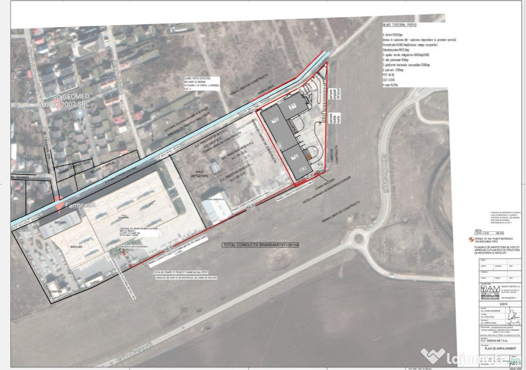 Pentru acest teren s-a schitat in 2020 un proiect pentru construirea de spatiu logistic cu o suprafata construita de 5.286 mp, pentru care am obtinut la momentul respectiv, toate avizele: apa, canal, isu, enel, mediu si gaze, necesare pentru obtinerea autorizatiei de construire.