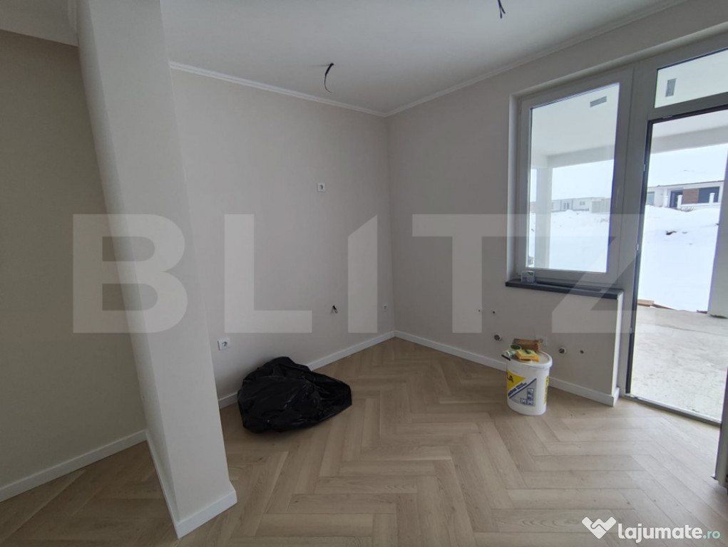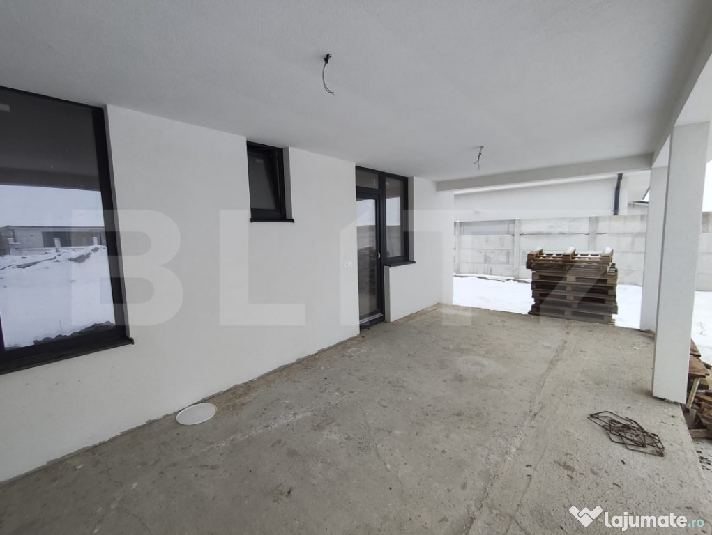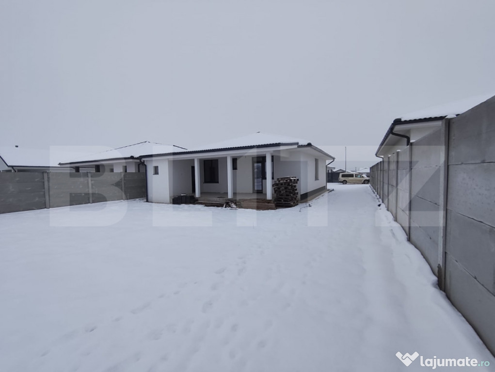 Casa in Santandrei pe un singur nivel compusa din hol de acces, camera de zi, bucatarie open space,3 dormitoare, 2 bai din care una cu acces din dormitorul matrimonial, camera tehnica si terasa amplasata pe un teren de 500 mp racordata la toate utilitatile. Acesta proprietate se poate vinde la stadiul de semifinisat sau la cheie. Suprafata construita este de 140 mp iar suprafata utila 110 mp. Va asteptam la vizionare.Cod ofertă / ID BLITZ: P161683