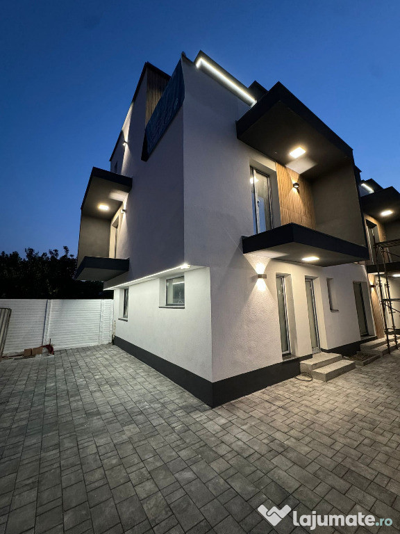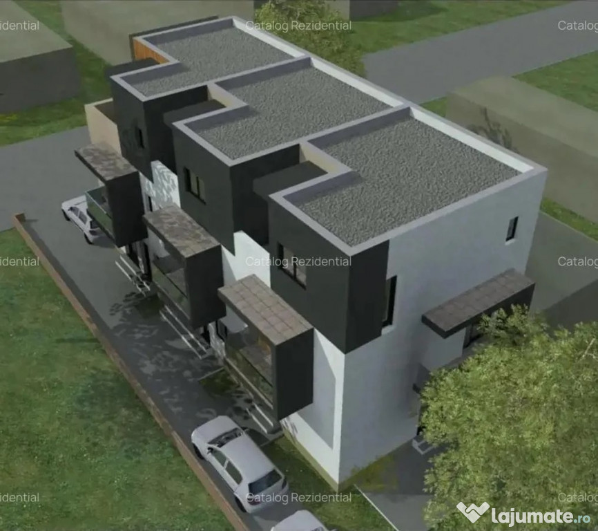 Agentia Imobiliara Catalog-Rezidential va prezinta 3 apartamente individuale pe 2 nivele-4 camere (P+1+2E) cu 3 dormitoare, 1 living spatios + bucatarie open-space, 3 bai pe fiecare etaj, curte proprie, 2 terase fiecare, intr-o vila cu un proiect deosebit construita din caramida Porotherm in anul 2025.Vila este racordata la toate utilitatile.