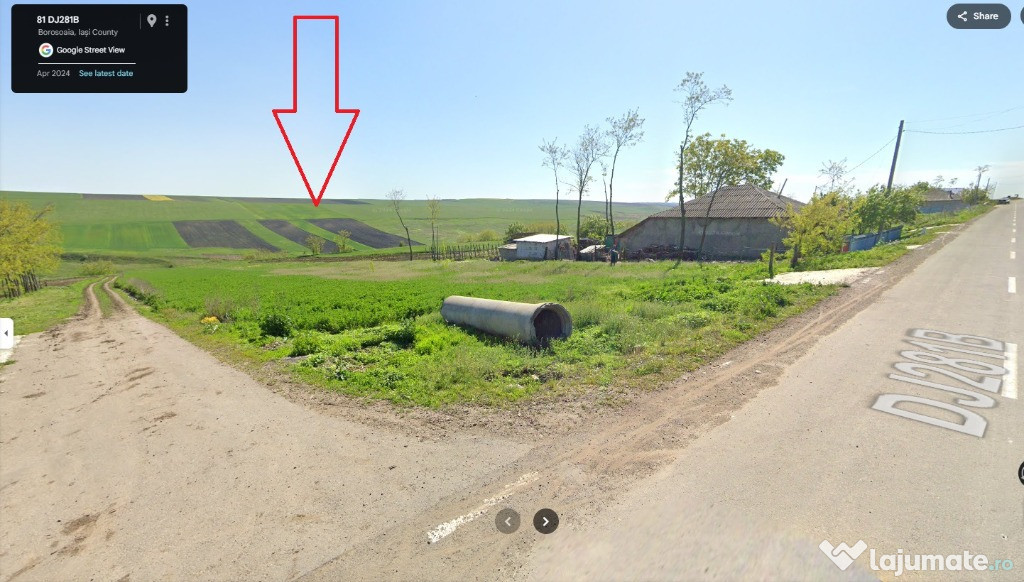 Teren agricol, cu suprafata de 4.65 hectare, situat in extravilanul comunei Sipote, Jud Iasi. Acces f ...