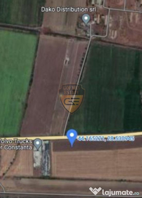 Teren situat in intravilanul municipiului Constanta, in suprafata de 10000 mp cu deschidere de 45 m la DN3 (Soseaua Constanta - Valu lui Traian), invecinat cu parcul de dezmembrari auto. Terenul este impartit in 2 loturi situate in parcela A 898/24 cu numar cadastral 222480 si 222504. Deschiderea la sosea si PUZ-ul aprobat il face ideal pentru constructii cu un regim de inaltime de P+3 de tip showroom, constructii industriale, cladiri de birouri, etc. Zona este deja exploatata, in imediata vecinatate fiind parcul de dezmembrari auto si un showroom auto (VOLVO).