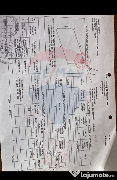 Vanzare doua loturi alaturate in suprafata de 2000 mp si 5000 mp situate in localitatea Frumusani , p ...