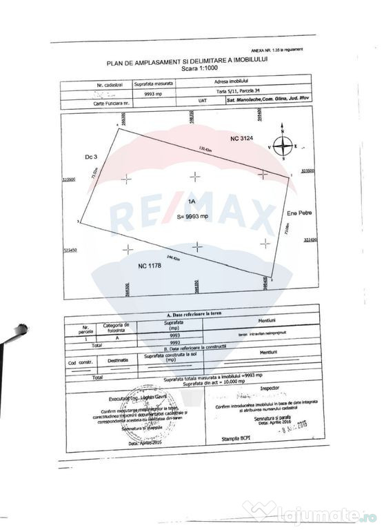 Catalin Manolache- Senior Broker Blitz Imobiliare va propun spre vanzare un teren intravilan de 1800 ...