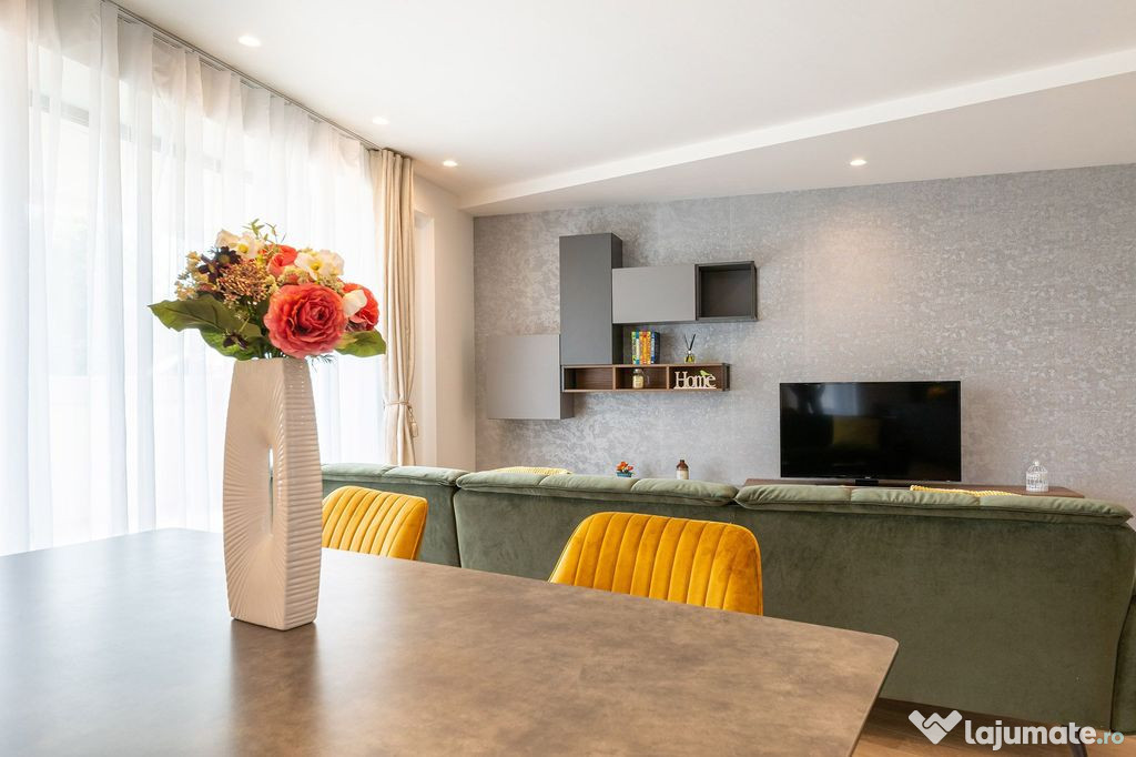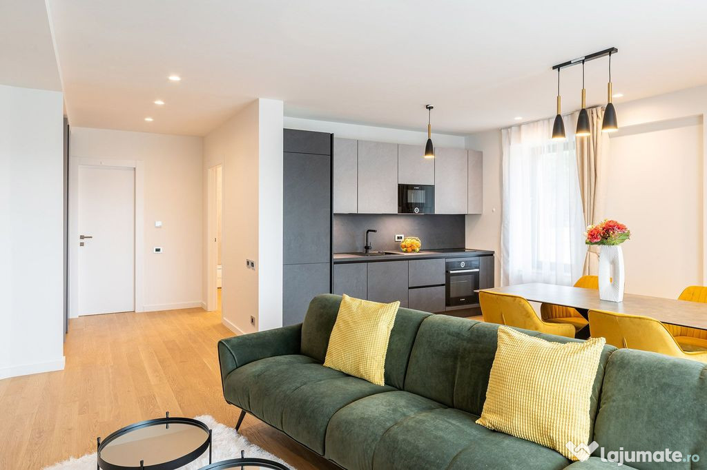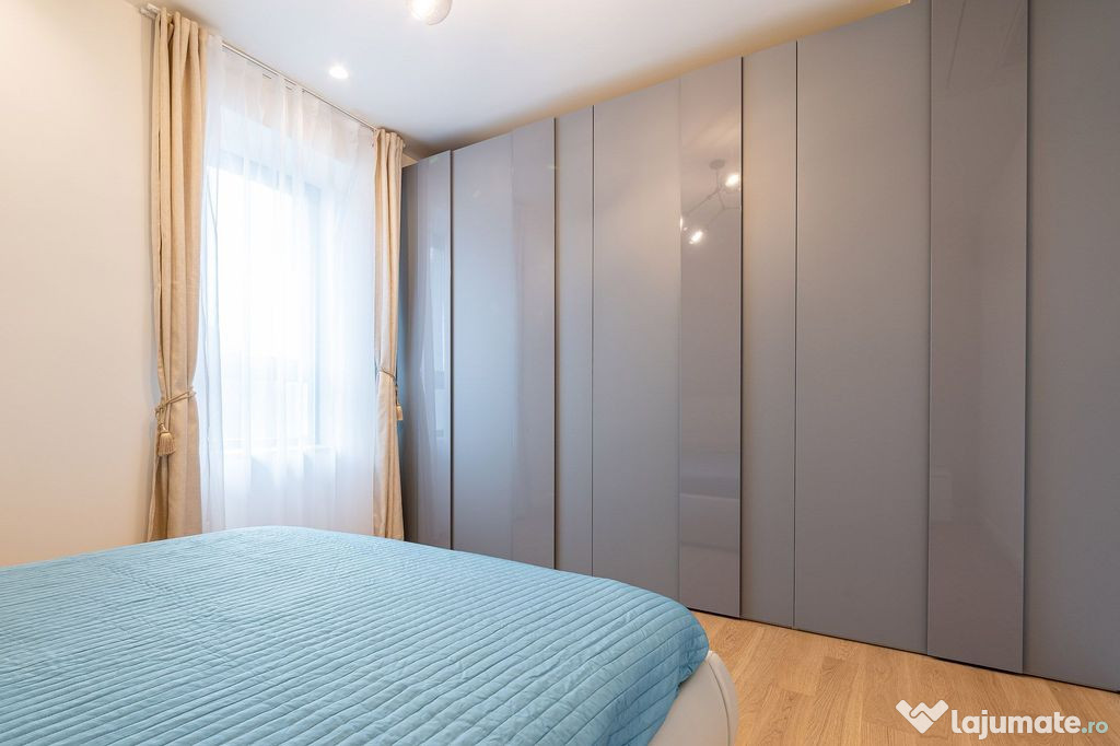 Va propunem spre inchiriere un apartament de 2 camere in zona Aviatiei, in ansamblul rezidential Aviatiei Towers.Apartamentul de 2 camere finalizat in decembrie 2020 se inchiriaza complet mobilat si utilat impreuna cu un loc de parcare subteran inclus in pret.