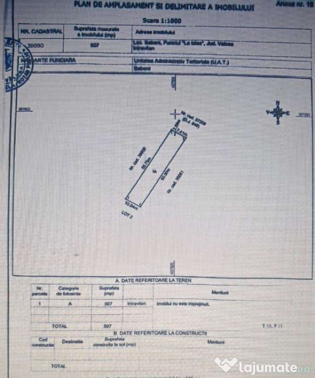 Anuntul Teren intravilan de vânzare – 507 mp, Băbeni, punct Izla este adaugat de pe LaJumate.ro.