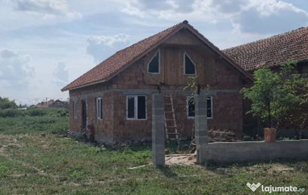 -pe teren exista o constructie de tip locuinta cu regim de inaltime parter+mansarda, la stadiu de „la rosu”, prevazuta cu tamplarie din PVC si geamuri termoizolante, cu acoperis din tigla ceramica, aceasta constructie nu este intabulata, nu face obiectul vanzarii