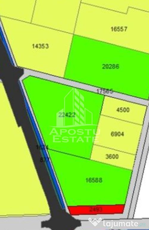 APOSTU ESTATE vă propune spre vânzare un teren cu potențial excelent de dezvoltare, situat în imediata apropiere a noii descărcări de pe autostradă și lângă viitorul Street Mall.Suprafață totală: 16.588 mp