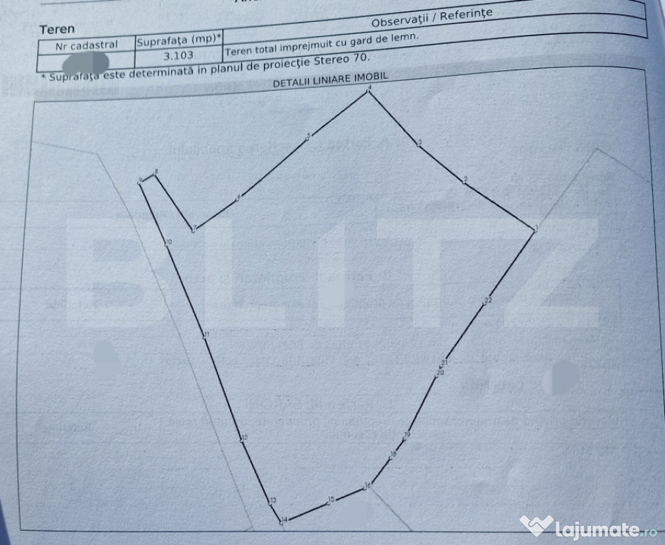 Terenul este extravilan, cu o suprafață generoasă de 3103 mp, amplasat într-o zonă turistică, liniștită și pitorească, perfectă pentru dezvoltare rezidențială sau turistică,