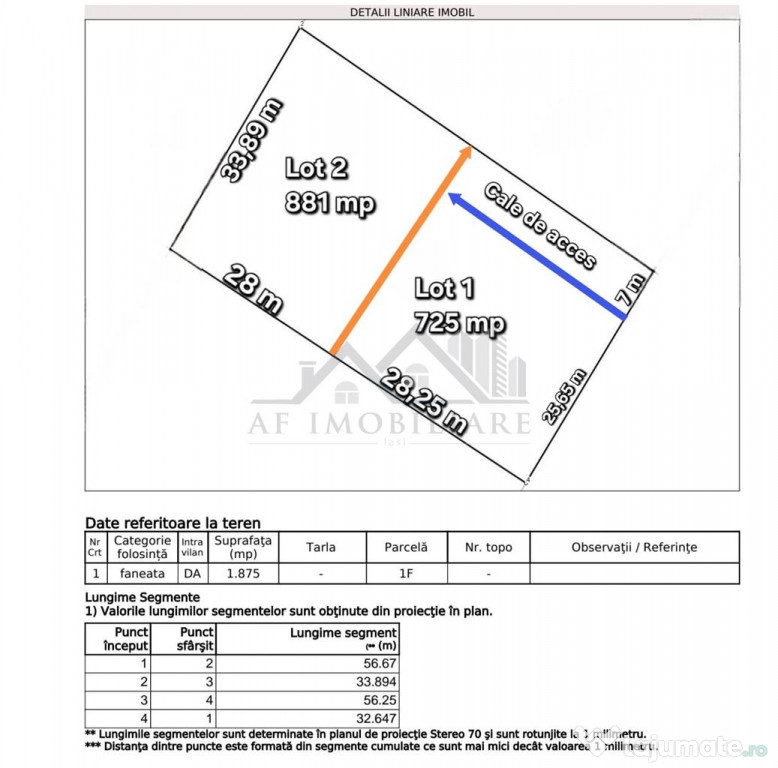 -Terenul este intravilan si are suprafata totala de 1875 mp.