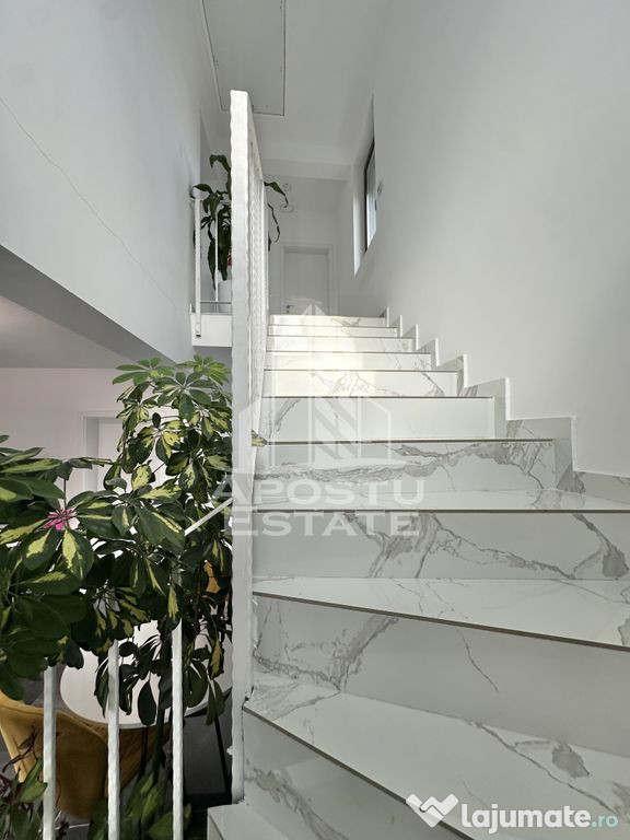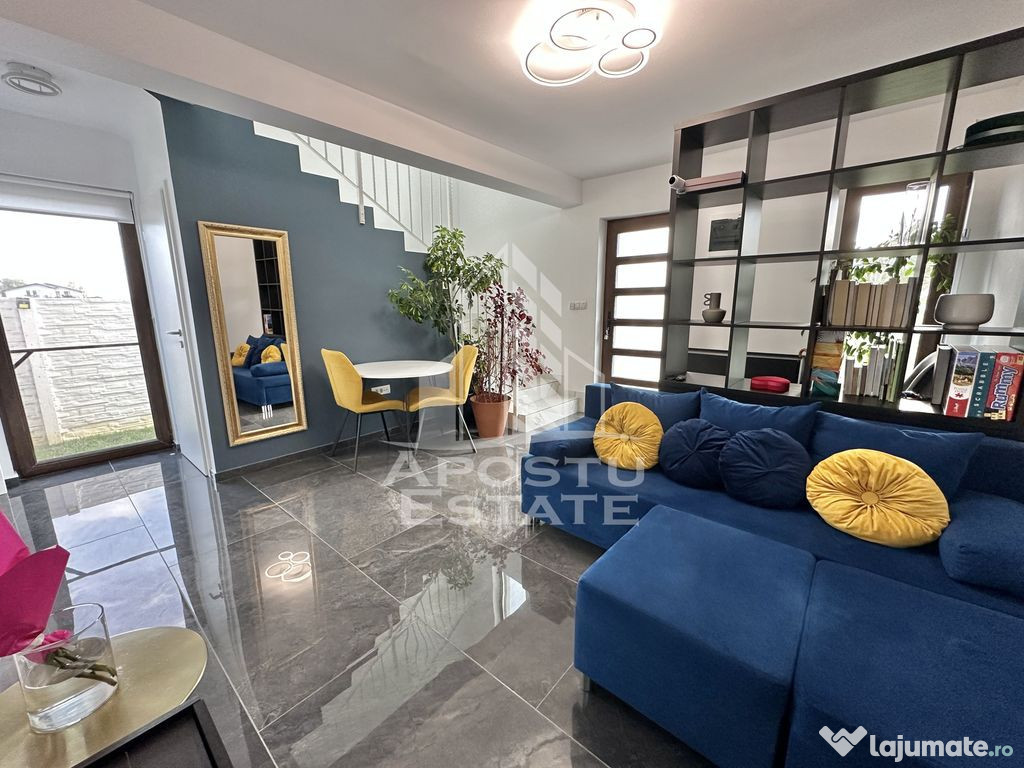 APOSTU ESTATE va propune spre vanzare un duplex situat in Giroc - Calea Urseni.Locatia imobilului se potriveste perfect celor ce isi doresc sa se detaseze de agitatia orasului. In apropiere sunt magazine si supermarket-uri precum Profi, Mega Image, scoala si gradinita la o distanta de 5 minute, acces facil la mijloace de transport în comun, distanta pana in statie este de aproximativ 3 minute.