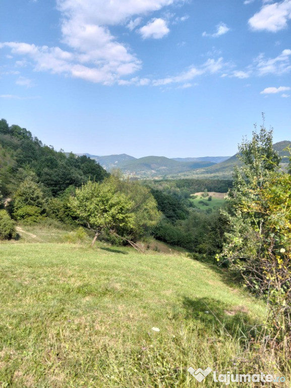 Terenul are trei categorii de folosinta,cca 5500 mp,intravilan ,70.000 mp/pasune/faneata,2800-3000 (+) padure de stejar si pin. Suprafata se preteaza pentru parcelare.
