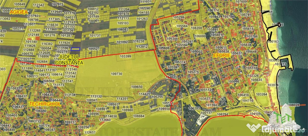 Terenul este situat in zona Techirghilol in apropierea Lacului dar apartine de comuna Agigea, judetul Constanta o zona cu potential la o distanta convenabila de municipiul Constanta si de litoral. Zona beneficiaza de acces bun la infrastructura rutiera si de oportunitati imobiliare semnificative.