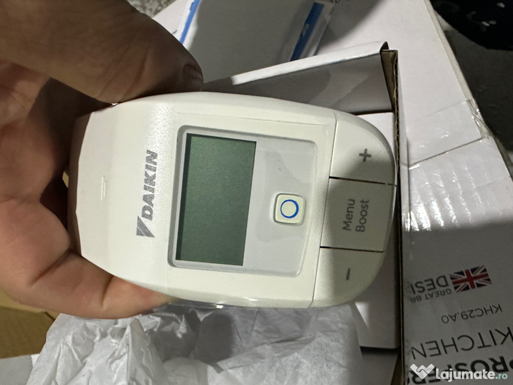 Termostatul Daikin,pentru calorifere permite controlul temperaturii în fiecare cameră în parte, unde încălzirea se face cu radiatoare. Se potriveste la toate robinetele de radiator obisnuite. Termostatele pentru radiatoare pot fi utilizate numai pentru încălzire. Este potrivit pentru radiatoare cu o dimensiune a filetului de M30 x 1,5.Detin 20 de buc,pretul este per bucata,la toata cantitatea se ofera 25% reducere
