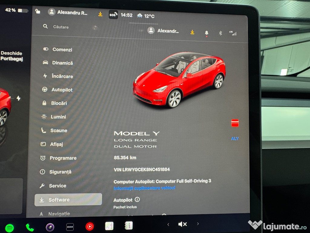 Tesla Model Y Long Range, dual-motor, an 2022, 85.000 km, stare bună.Seria VIN: LRWYGCEK8NC451884.