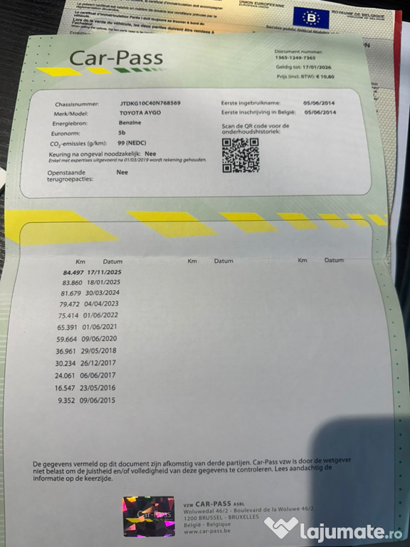 Vand Toyota Aygo 06/2014Recent adusă din Belgia pe platformă