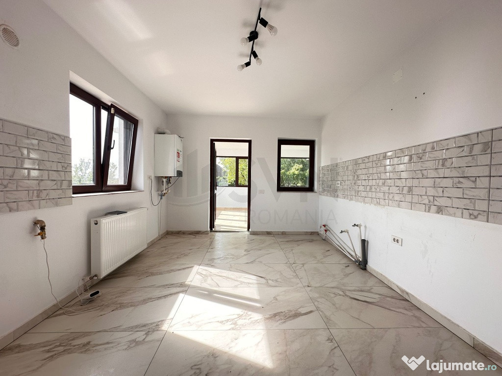 - parter, terasa, cu acces din bucatarie, dormitor, baie