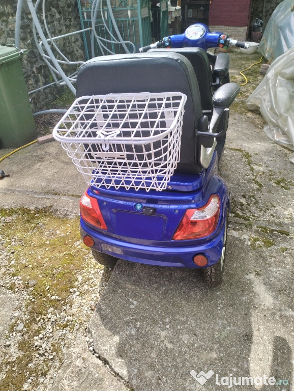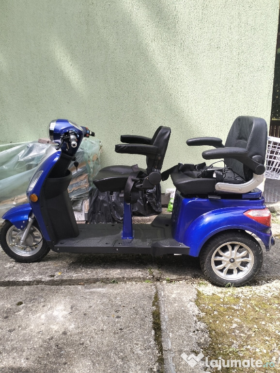 Tricicletă ZT18 nefolosita cu bateriile în garanție noi . Tricicleta electrica adulti 2 locuri, 1000 W, 25 km h, Z-Tech ZT 18Tricicleta electrica adulti 2 locuri fara permis ZT 18 de la Z-Tech este ideala pentru cei care vor sa se bucure de libertatea de a se deplasa usor, fara a fi nevoiti sa obtina un permis de conducere. Acest vehicul electric are un motor puternic de 1000W fara perii, baterii de 60 V (5 bucati x 12V), capacitate 20 Ah Plumb-Gel (Acid), ghidon cu soft grip, fotoliu reglabil, cotiere rabatabile si frana fata spate butuc. Tricicleta electrica ZT 18 ofera o autonomie de 60Km si poate urca pante cu un unghi de maxim 25 de grade.