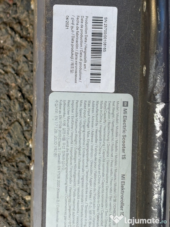 Trotinetă electrică Xiaomi 1S – roți pline, stare foarte bună!Vând Xiaomi Scooter 1S, în stare foarte bună, folosită cu grijă și fără probleme tehnice.