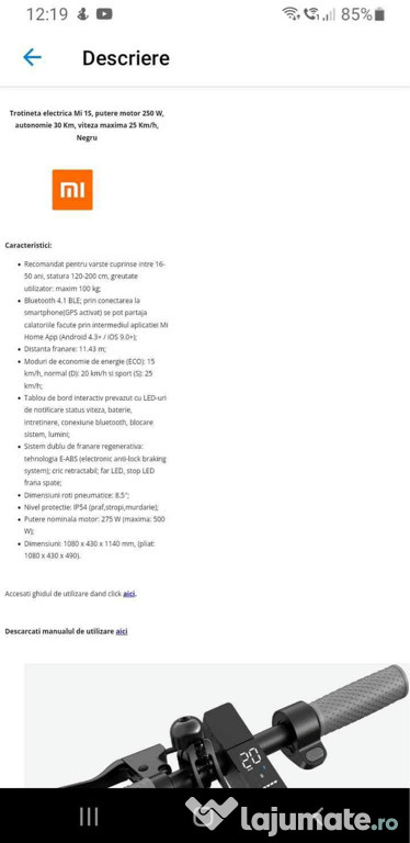 Anuntul Trotineta electrica xiaomi Mi 1S este adaugat de pe LaJumate.ro.
