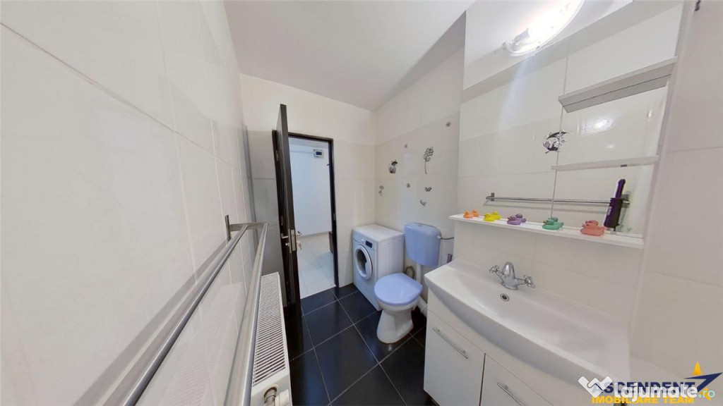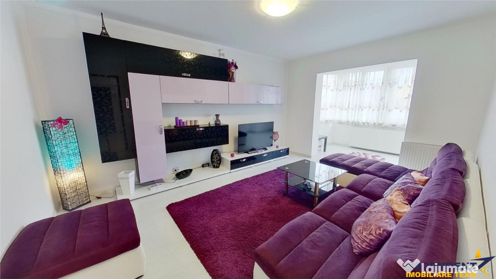 - living modern cu iesire in balcon, bucatarie echipata complet cu plita, cuptor, hota, frigider, 2 holuri generoase, doua dormitoare cu pat matrimonial, baie cu aerisire naturala si cada, precum si baie de servici.