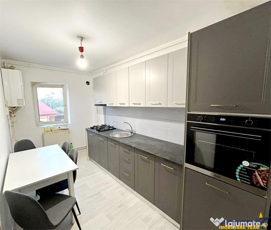 Imobilul se prezinta mobilat si utilat, cu toate imbunatatirile incluse, centrala termica proprie, gresie si faianta, parchet laminat, ferestre cu geam termopan etc
