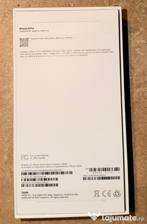 Vând Iphone 15 Pro, capacitate de stocare 128GB. Telefonul este în stare foarte bună , toate piesele sunt originale , nu prezintă modificări și funcționează perfect. Oferă o experiență de utilizare extraordinară și este ideal pentru cei care apreciază tehnologia de vârf. Este achiziționat din SUA , aceste modele suportă doar Esim. Sănătatea bateriei este 87%.Anuntul IPhone 15 pro 128GB este adaugat de pe LaJumate.ro.