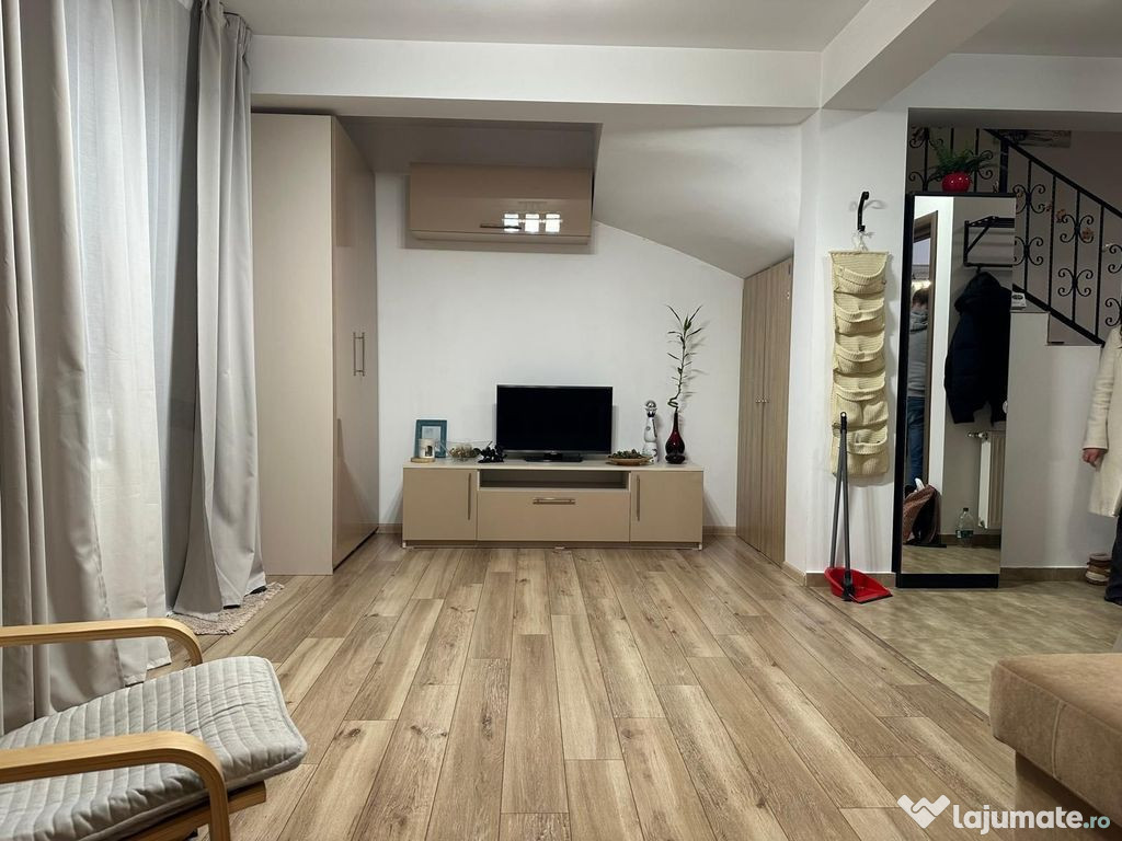 – Mobilată, parțial utilată (plită, cuptor, hotă, mașină de spălat vase, TV)