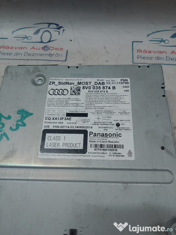 Unitate CD Audi A3 2015. Cod(uri): 8V0035874B. Piesele comercializate sunt originale, provenite din dezmembrari. Dispunem de o gama larga de piese multimarca. Piesele sunt verificate inainte de a fi puse spre vanzare. In caz de neconformitate piesa se poate returna. Va rugam sa verificati disponibilitatea pieselor telefonic. Trimitem in tara prin curier.Marcă: Audi