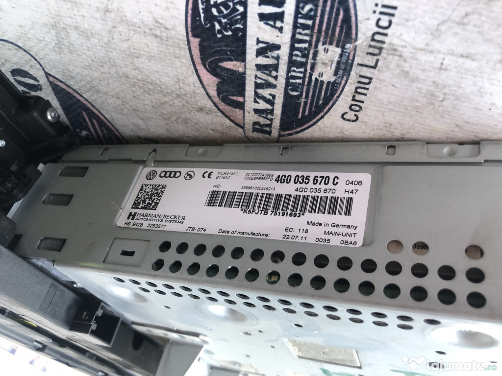 Unitate CD Audi A6 2012. Cod(uri): 4G0035670C. Piesele comercializate sunt originale, provenite din dezmembrari. Dispunem de o gama larga de piese multimarca. Piesele sunt verificate inainte de a fi puse spre vanzare. In caz de neconformitate piesa se poate returna. Va rugam sa verificati disponibilitatea pieselor telefonic. Trimitem in tara prin curier.Marcă: Audi