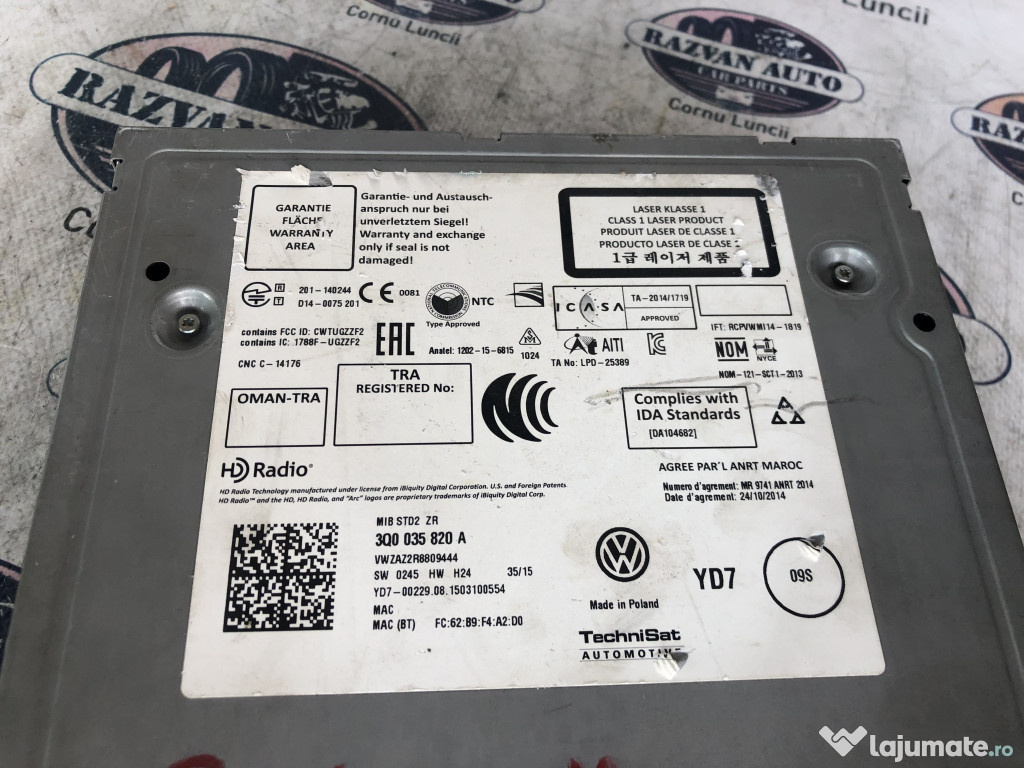 Unitate CD Volkswagen Golf 7 2014. Cod(uri): 3Q0035820A. Piesele comercializate sunt originale, provenite din dezmembrari. Dispunem de o gama larga de piese multimarca. Piesele sunt verificate inainte de a fi puse spre vanzare. In caz de neconformitate piesa se poate returna. Va rugam sa verificati disponibilitatea pieselor telefonic. Trimitem in tara prin curier.Marcă: Volkswagen