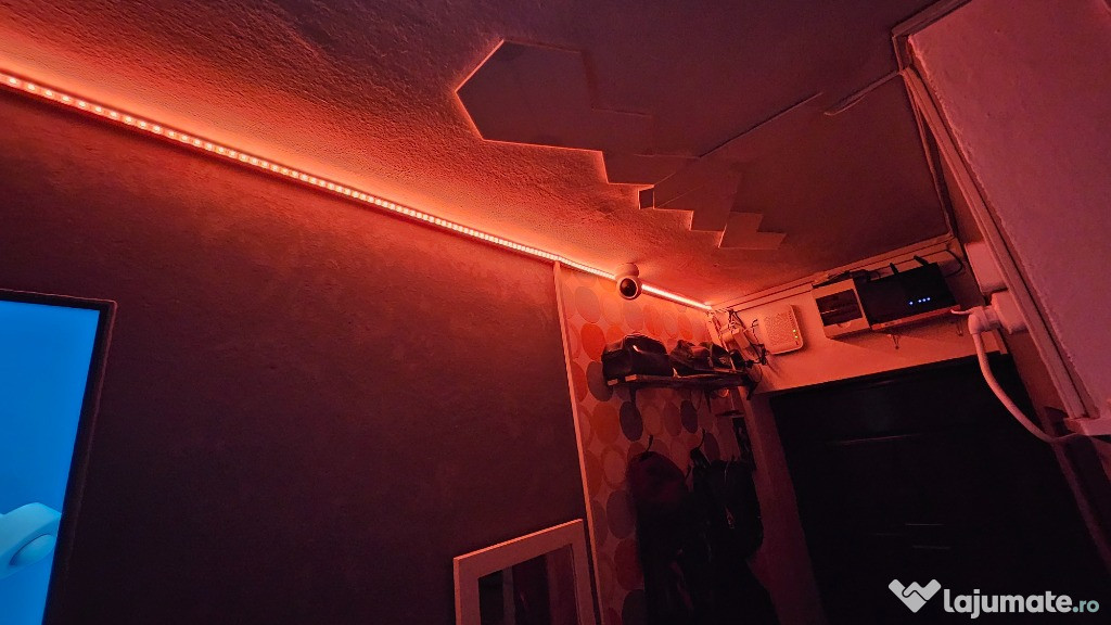 -Sistem de iluminare ambientala LED (banda 5m si triunghiuri decorative) cu RGB si control prin Wi-Fi telefon.