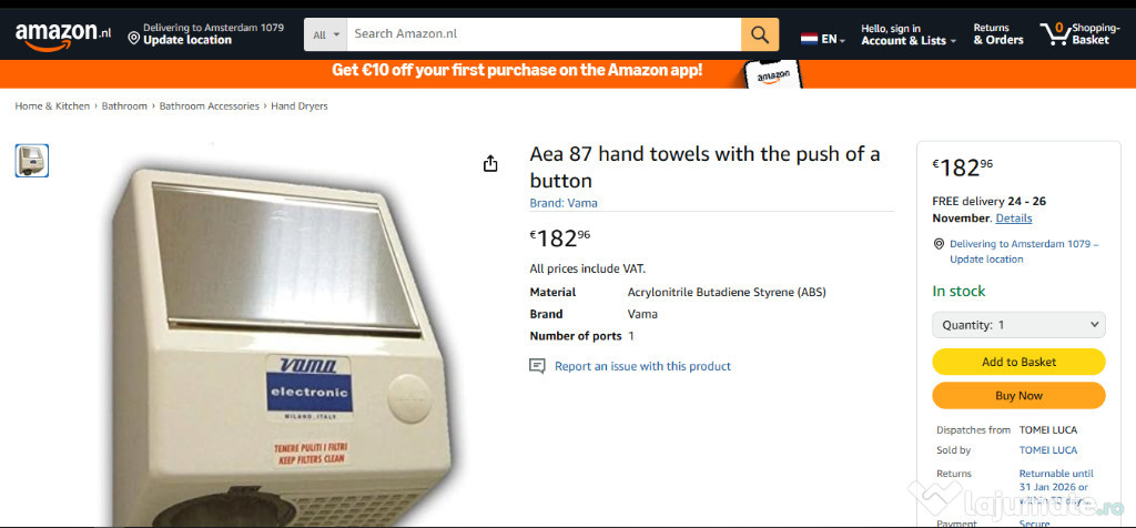 Anuntul Uscator maini aer cald VAMA AEA/E Super 87 cu fotocelule este adaugat de pe LaJumate.ro.